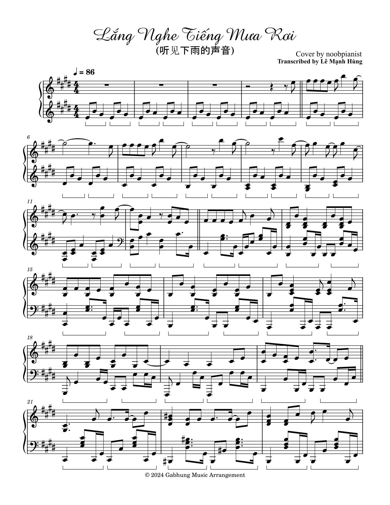 Lắng Nghe Tiếng Mưa Rơi (听见下雨的声音) | Cover by noobpianist 60.000 ₫ Lắng Nghe Tiếng Mưa Rơi (听见下雨的声音) | Cover by noobpianist số lượng Thêm vào giỏ hàng Danh mục: GMA Cover Sản phẩm tương tự Baikal Lake | Cover by Blueman 100.000 ₫ Thêm vào giỏ hàng Bad Love | Composed by Yuriko Nakamura 100.000 ₫ Thêm vào giỏ hàng Bán Hồ Sa (半壶纱) | Transcribed by Le Manh Hung 150.000 ₫ Thêm vào giỏ hàng Cánh Chim Hải Âu | Cover by wizardrypro 60.000 ₫ Thêm vào giỏ hàng